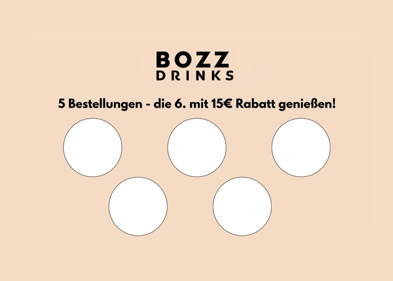 Hast du 5 Punkte gesammelt, bekommst du bei deiner 6. Bestellung einen 15 € Rabattcode geschenkt.